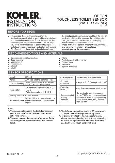 Read installation guide kohler Reader